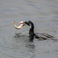 Добрый вечер Александр, смотрю на баклана и на окуня как он его заглатывает, как у змеи морда растягивается!!!
