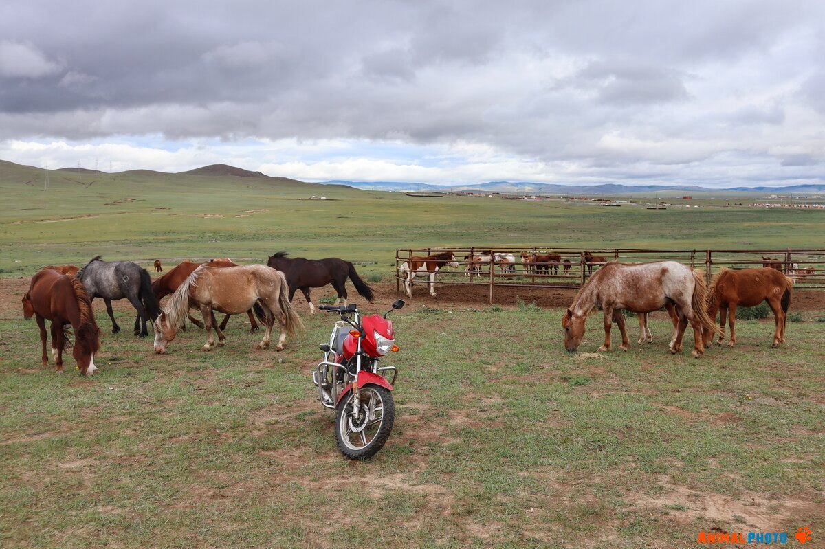 Железный конь и живые кони, Монголия. Июль 2023 года