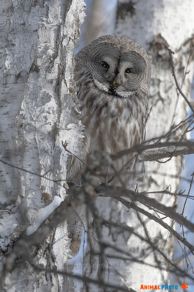 Бородатая неясыть (Strix nebulosa), февраль, 14:20